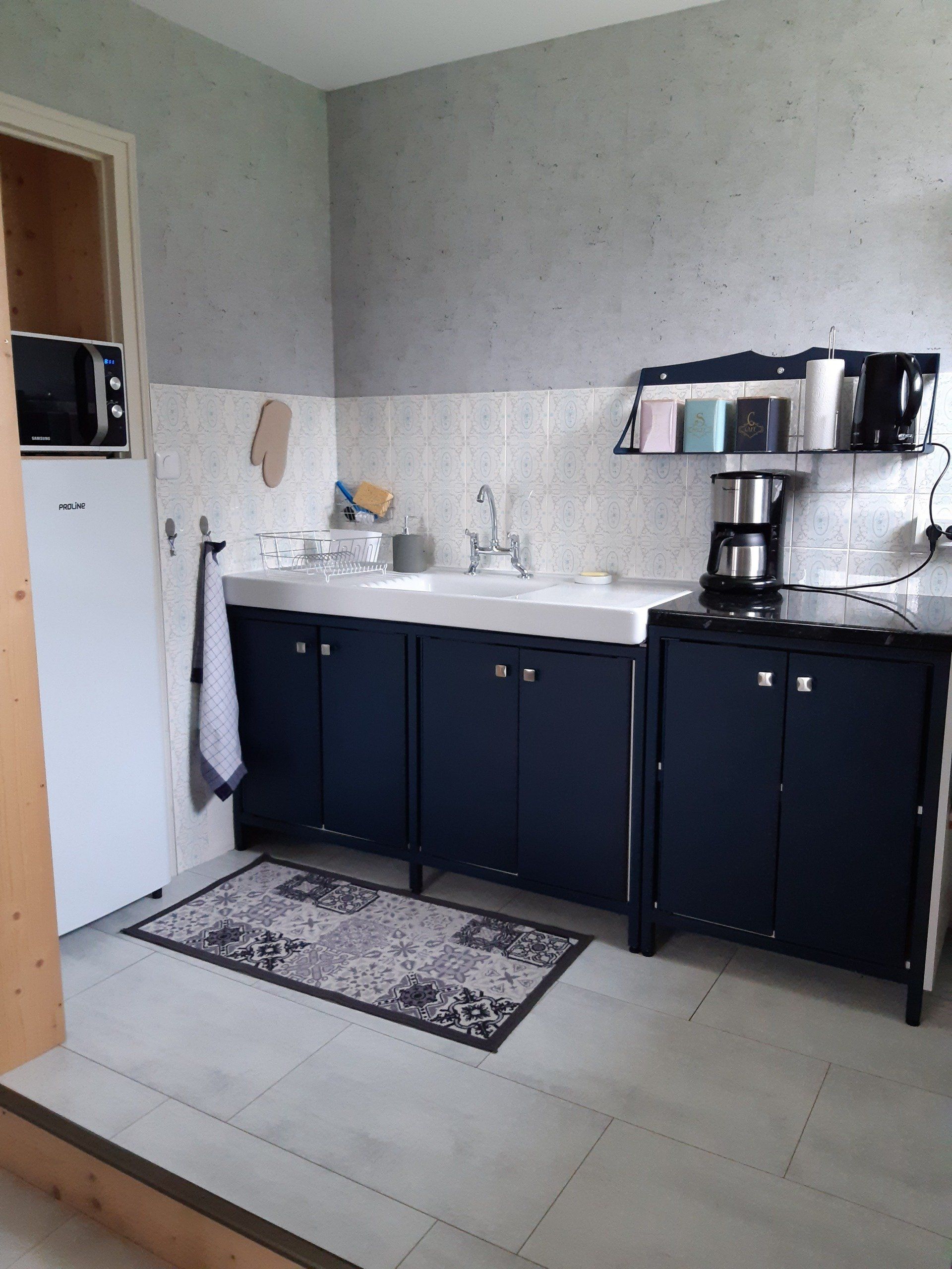 - frigo, gazinière induction/four, lave-vaisselle, micro-ondes, cafetière à filtre, bouilloire, grille-pain.